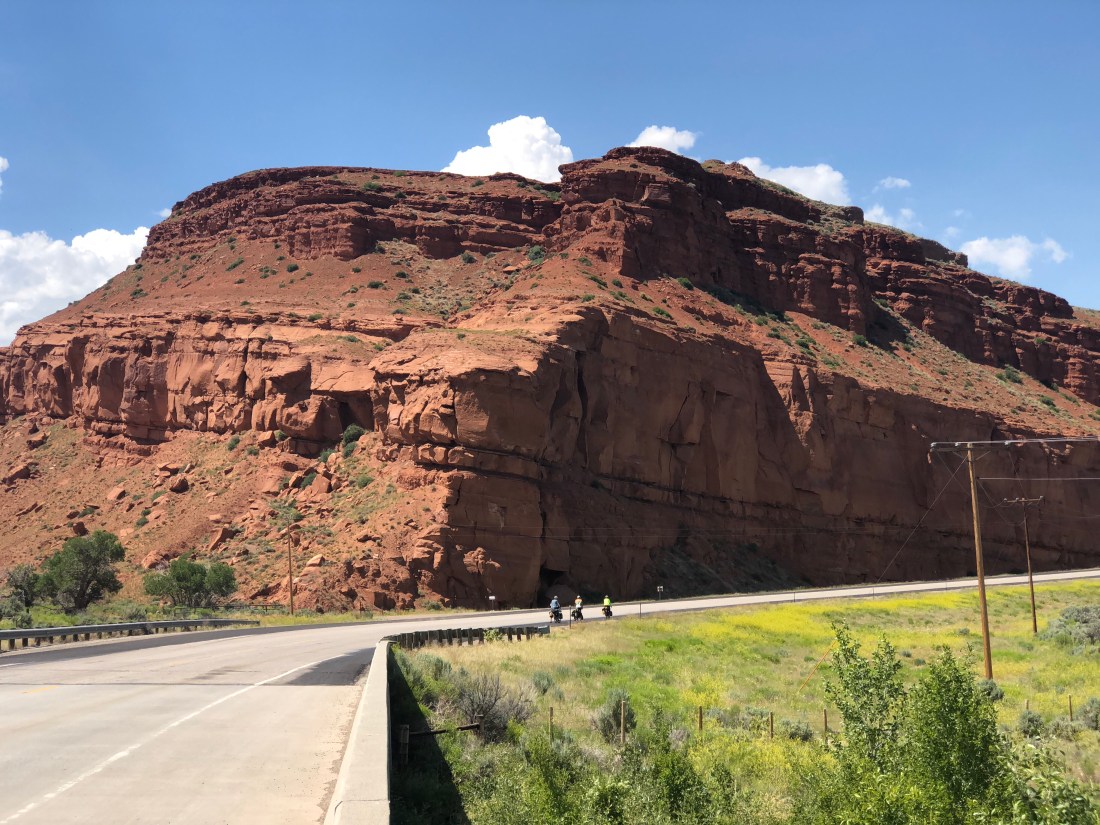 After not enough sleep we left early in the morning in an attempt to avoid the fierce Wyoming winds. The riding to the Tetons included the most dramatic scenery of the entire trip: spectacular vistas, red-rock canyons, lakes and rivers, and the glory of the Teton range as it comes into our view.