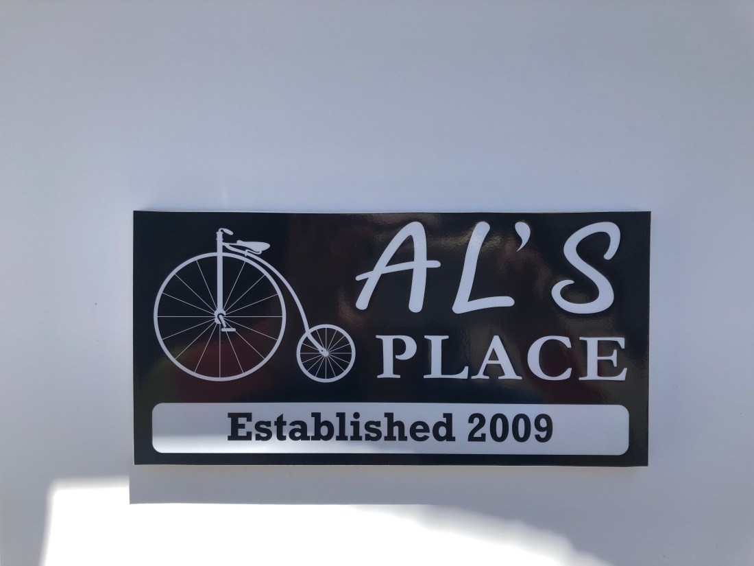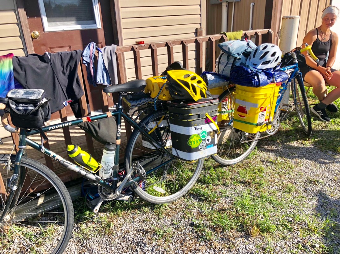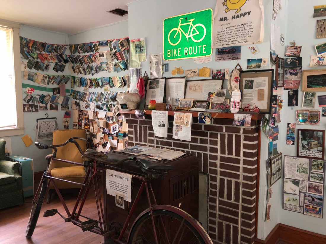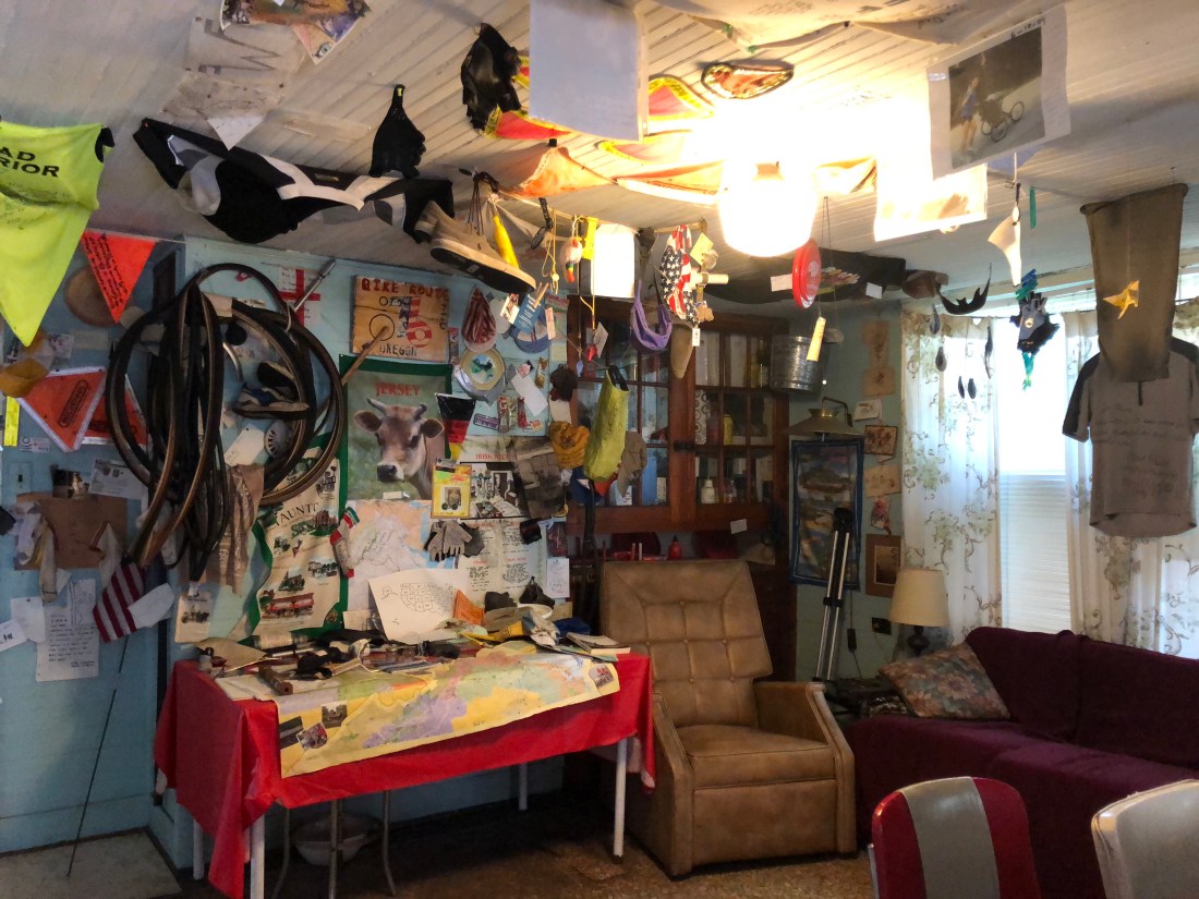 Tom relaxes in “Al’s Place”, a biker hostel in Farmington, MO. This is the nicest bike hostel in the country, a designated historical building that had served as a jail.